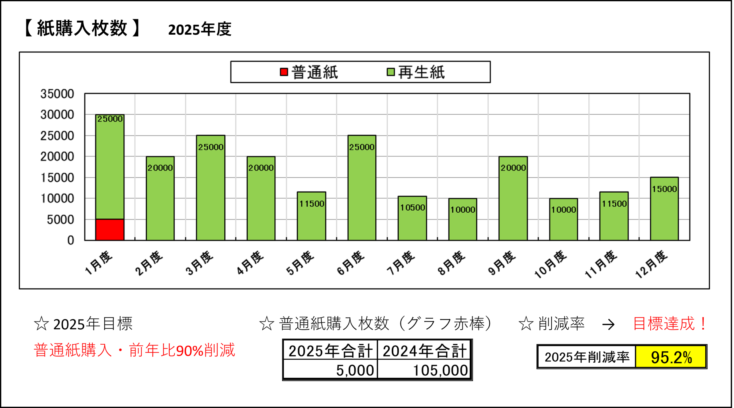 - 全社の紙購入量全体を2025年比 1万枚(約5%)以上削減